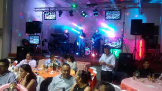 Incluye 5 horas de música 100% versátil con un descanso de 30 minutos. El grupo cuenta con 5 elementos: Tecladista, Baterista, Guitarra, voz femenina y voz masculina. Equipo de audio depende del número de personas. Sistema de Iluminación con 10 efectos de luces para escenario y pista. 2 pantallas de video de 40” y 1 pantalla de video de 50”. Souvenirs (Mechudos, corbatas, diademas y globos). 1 hora de Zanquero. Géneros musicales: Balada, Pop, Cumbia, Salsa, Norteña, Ranchera, Banda, Mambo, etc.