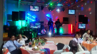 Incluye 5 horas de música 100% versátil con un descanso de 30 minutos. El grupo cuenta con 5 elementos: Tecladista, Baterista, Guitarra, voz femenina y voz masculina. Equipo de audio depende del número de personas. Sistema de Iluminación con 8 efectos de luces para escenario y pista. 2 pantallas de video de 40”. Souvenirs básicos (Mechudos y globos). Géneros musicales: Balada, Pop, Cumbia, Salsa, Norteña, Ranchera, Banda, Mambo, etc.